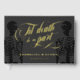 Elegant dark Halloween or goth wedding guestbook with Til death do us part written in a swirly gold foil calligraphy script. Add your names and wedding date in gold foil against a dark grey background with black skeletons for a romantic goth look. Grey and black wedding guestbook, perfect for a goth wedding with a skeleton theme and gold foil fonts. Til death do us part wedding invitation in dark grey and black and gold.