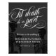 Elegant dark Halloween or goth wedding welcome poster with Til death do us part written in a swirly white calligraphy script. Add your names and wedding date against a dark grey background with black skeletons.