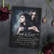 Elegant photo Halloween or goth wedding save the date with Til death do us part written in a swirly white calligraphy script across your photo. Add your wedding information in white against a black gradient at the bottom of your photo to make the text pop. A skull detail too, in dark grey. Personalise with a photo! Wow your wedding guests with this stunning goth save the date card with your photo and a skull.