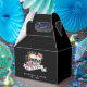 Cool til death do us part wedding favour box with watercolor skulls and roses. Black background. Personalise it with your event details.