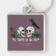 This romantic goth "Til Death Do Us Part" Irish St. Patrick's Day wedding key chains feature hand-drawn Irish & gothic themed illustrations in black ink, showcasing husband and wife skulls and a black crow adorned with green roses, leaves, berries, wildflowers and green clovers.