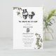 A Gothic Halloween script wedding design with black floral vines, skulls and heart. A white Halloween design that uses black and dark botanical greenery along with vintage script calligraphy typography. A stylish skulls Gothic design ideal for Halloween wedding themes. A unique black botanical, skulls and heart wedding invitation design. Matching wedding stationery items and other wedding invite formats are also available.
