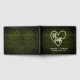 An illustration of text "Til Death" incorporated into heart shaped white neon sign design over a boxwood hedge greenery background. Personalise the name and date.
