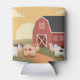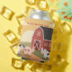 Three cows next to a red barn at sunset with one line of customizable text on the front.