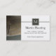 This construction flooring business card has a photograph on the left side of the grooves in some grey mortar left from a trowel. In the background, you can see some tile that is being laid. On the right, there is a pewter grey square at the top with two stripes behind. There, you can easily customise the monogram initial. Below and on the backside, you can personalise all of the details of the business.
