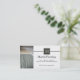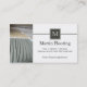 This construction flooring business card has a photograph on the left side of the grooves in some grey mortar left from a trowel. In the background, you can see some tile that is being laid. On the right, there is a pewter grey square at the top with two stripes behind. There, you can easily customise the monogram initial. Below and on the backside, you can personalise all of the details of the business.