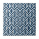 This ceramic tile trivet is shown with a lovely navy blue and white pattern print.