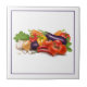 This ceramic tile trivet is shown with a lovely vegetable group art print.