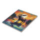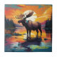 This ceramic tile trivet is shown with an art print of a moose in famous Yellowstone Park.