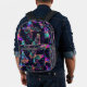 Tiled Neon Butterfly Pattern Printed Backpack
