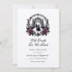 Encircled by a lavish wreath of deep crimson roses and blackened greenery, the scene captures the essence of dark romance and mystique. Richly layered in mood and detail, this invitation merges gothic glamour with refined sophistication, setting the perfect tone for a wedding steeped in passion, drama, and eternal vows.
