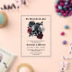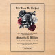 This design feathers a vintage Halloween theme "TILL DEATH DO US PART" floral skull with red black and white flowers around it on a gothic black background. This card is easily editable with your personal details.
