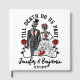 Make your wedding unforgettable with this square white guest book featuring skeleton bride and groom illustrations, red roses, and the bold grunge phrase “Till death do us part.” Personalised with the couple’s names and wedding date, the book also includes wedding bells with a ribbon on the back. Designed in striking black, white, and red with distressed lettering, this guest book is perfect for couples planning a Halloween wedding, Día de Muertos celebration, or a gothic-inspired ceremony with a playful twist. A unique keepsake for collecting signatures and well-wishes that match your love-until-the-end theme.