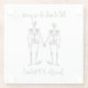 Glass Coaster with skeleton couple in black colours. Personalise your text and name. Customise and make a special gift!
