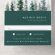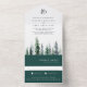 Elegant fall or winter wedding invitation features a copse of tall watercolor pine trees in shades of greyed sage and hunter green. Personalise with your wedding details in chic soft off-black lettering, topped by your initials joined by a script ampersand to create a beautiful custom monogram. A chic choice for elegant autumn or winter weddings in mountain or forest settings.
