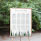 Wedding guest seating chart matches our Timber Grove collection, featuring a row of winter watercolor pine trees in shades of forest and hunter green.