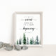 Invite guests to grab some sweets with our charming rustic wedding dessert table sign. 11x14 dessert table sign features a bottom border of watercolor pine trees in rich shades of hunter and forest green, with "a sweet ending to a new beginning" in off-black calligraphy script and block lettering. Personalize with your wedding date underneath the inscription. Designed to match our Timber Grove collection for autumn or winter weddings in forest or woodland settings.