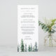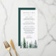 Our rustic elegant wedding menu features your starter courses, entrees and desserts accented with a row of watercolor pine trees in hunter green and forest green. Coordinates with our Timber Grove wedding collection.