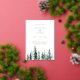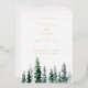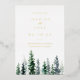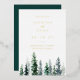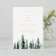 Elegant winter wedding save the date cards feature luxe gold foil lettering with a bottom border of hunter green watercolor pine trees. A chic choice for winter weddings in forest, mountain or woodland settings, these elegant flat save the date cards are easy to customise with your names, wedding date, wedding location, and website or an indication that a formal invitation will follow.