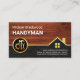 Over at the top is your prestigious name, the business name and a gold handyman tools logo you can use. Towards the base is the contact details.