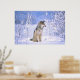 Timber Wolf sitting in the Snow, Canis lupus, Poster
