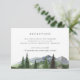 Invite your guests to the celebration with this elegant wedding reception card from the Timberline collection by Redwood & Vine Design Co. A refined serif layout sits above lush watercolor mountains and pine trees, creating a perfect match for rustic minimalist, forest, or winter weddings. Use this insert to share venue details, time, or dinner and dancing information with your guests in coordinated style.