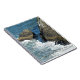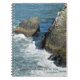A personal sized, spiral bound notebook that features a seascape image of breaking waves along a rocky coastline along with the famous Geoffrey Chaucer quote, "Time and tide wait for no man." Use as a journal or to keep important notes.
