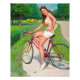 Beautiful vintage pinup art by Gil Elvgren. Cute pinup girl on a bicycle.
