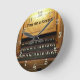 A three-manual pipe organ console, with white and black notes reverse, set in a light-wood case. The words in black read "Time for a toccata!", and the numbers are set in white around . Round option