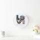The clock did not take as long to arrive as I thought it might and was extremely well packaged. I didn't do the measurements so I didn't realize it is a little smaller than the average clock but that does not matter (just make sure you check if that's important to you).It is really nifty! It seems very solid and well made not flimsy at all. It has been going well and has kept good time in its few weeks on my wall. Nice product. Gets noticed too! Nicer in real life than the picture but true to the picture