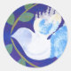 This soothing design shows a dove bearing an olive branch. From an original cut-paper collage.