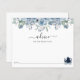 Bridal shower activity card features watercolor cascade of blue florals greenery with teapot. Advice" card prompts guests to share advice for the bride to be.