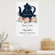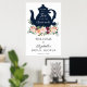 Welcome guests to your bridal shower with this beautiful poster, featuring a navy blue tea pot with colourful Burgundy and pink flowers with greenery. Add the guest of honour's name, shower date and custom welcome text using the fields provided.