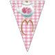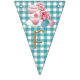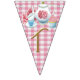 I have used Commercial Use designs for this bunting. The beautiful elements are so pretty that I put them together with pastel gingham backgrounds to make "Time for Tea" bunting. This bunting can be used indoors and outdoors and measures 6 feet in length and each flag measures 5.5 x 8 inches. So pretty!