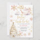 Time For Tea Pink Christmas Gold Bridal Shower Invitation
