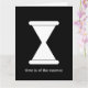 Time if of the essence hourglass sand clock custom greeting card. Personalise with your own quote and message inside. Modern black and white cards.