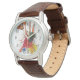 I like the illustrative watch with the lady on it. It is a great reminder that I am blessed and it has a very sturdy leather band. The colors are true and vibrant. Love the color of the Leather also. Very nice.