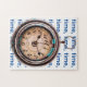 Jigsaw puzzle of an old hand watch and the word time repeated in the background.