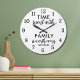 Custom clock with the inspiring family quote "Time spent with family is worth every second”.