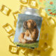 Can cooler with a high-definition image of a beautiful Boerboel dog lying on the grass, in front of the river, while enjoying the early morning sun with eyes closed. Slogan - Time to Chill!