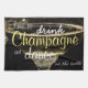 A photo of a glass full of champagne and words "Time to drink champagne and dance on the table" written over it"