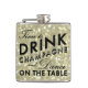 This is a fun and flirty flask that says, "Time to Drink Champagne and Dance on the Table" on an illustrated sparkly gold background, making it a perfect 21st birthday gift, holiday gift or bachelorette gift.