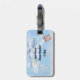 Grab your tickets, passport and travel bags and get ready to sea the world. Don't forget luggage tags, that will stand out from the crowd. This design has a background made up of a blue sky and white clouds. The collage on the front includes a passport, tickets, bag, compass and plane. On the back there's an area for your name and contact information.