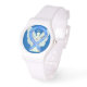 The wrist watch features the art of a blue awareness ribbon angel. The message on the watch notes "TIME 2 HOPE" but it can be customised to change the message to "CURE" or other words. This blue awareness ribbon wrist watches makes for great awareness ribbon jewellery angel gifts! The blue awareness ribbon colour means support for ALS, Free Speech, Foster Care Awareness, Colon Cancer, Child Abuse Awareness, Drunk Driving Awareness, Education, Arthritis, Huntington's Disease, Human Trafficking, Stop Bullying, and Save the Music to name a few. Let this blue awareness ribbon help bring awareness to these causes!