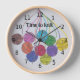This clock, which has numbers, is decorated with a drawing of many balls of yarn in an assortment of pretty colours. The words - Time to knit - are on the front of the clock but you can personalise them to your own words or name. The background is a very light grey and the numbers are black. The artwork is original to LyricalSixties. The clock would look lovely in your craft room.
