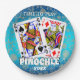 This fun design has a background of snowflakes with a queen of spades and a jack of diamonds, a pinochle.