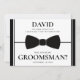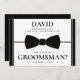 Invite your groomsman in style with this elegant, customisable proposal card. Featuring a sophisticated design with black accents and a formal bow tie illustration, this card is perfect for asking your closest friends to stand by your side on your wedding day. Personalise it with the recipient’s name and a heartfelt message. You can also add a custom date for that extra personal touch—a stylish, modern way to ask your groomsmen to be part of your special day.