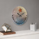 This multicolored seashore design features a single orange starfish on the shoreline of a sandy beach with the blue sea surf that washed it ashore. This whimsical clock inspires the belief in the magic of the Sea and wishing upon a fallen star.