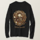Gears and analogue clocks in the background. Mechanoid skull in the middle.