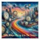 Embark on a psychedelic journey through time and space with this mesmerising artwork! This vibrant piece features a winding road, adorned with clocks, planets, and futuristic cityscapes, all swirling and merging in a kaleidoscopic display.